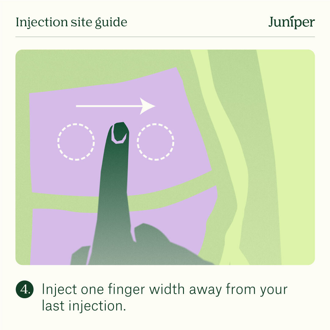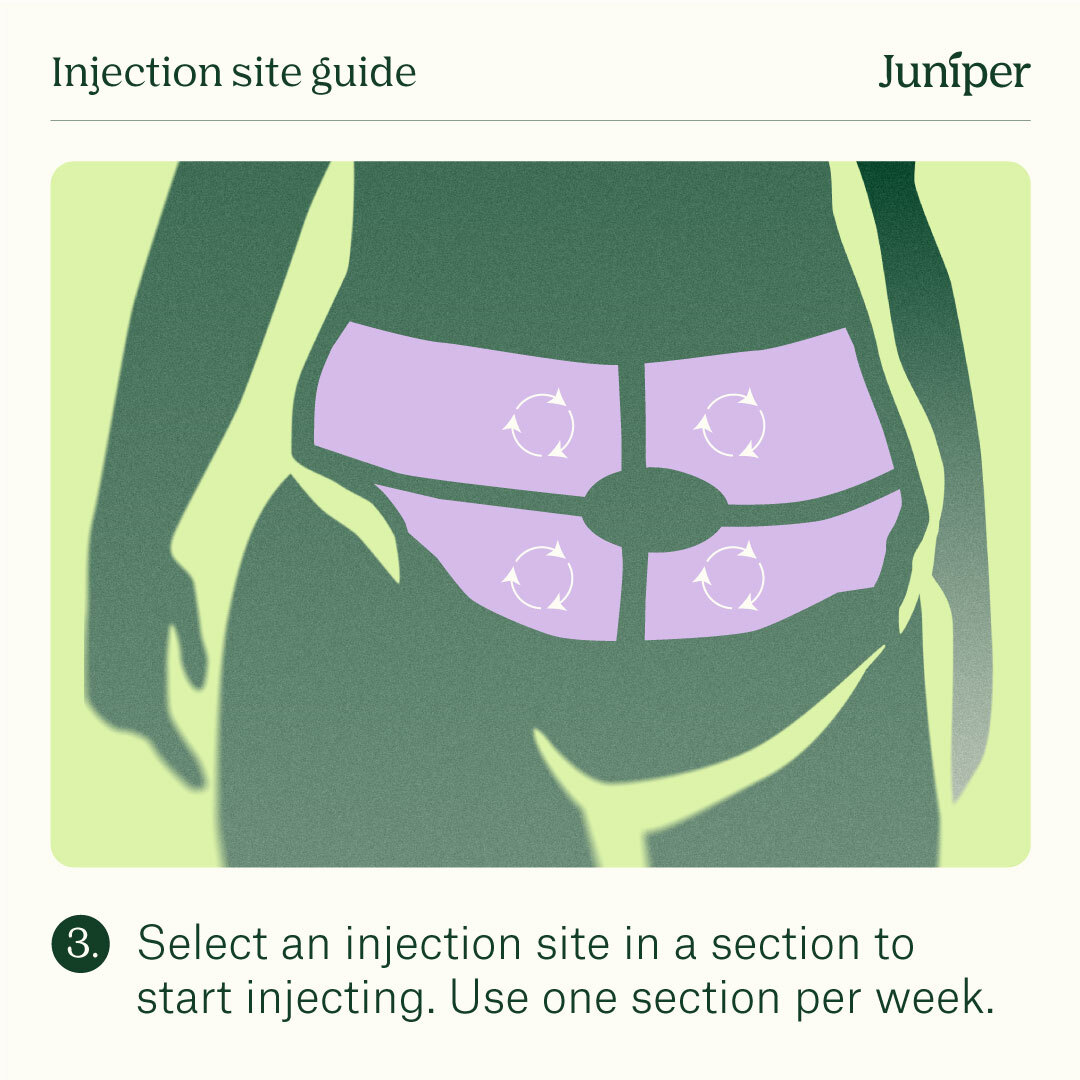 - Rotating injection sites (stomach, thigh, or upper arm) is essential to avoid. Juniper provides tailored guidance, behaviour support, and a community to help you achieve lasting results.