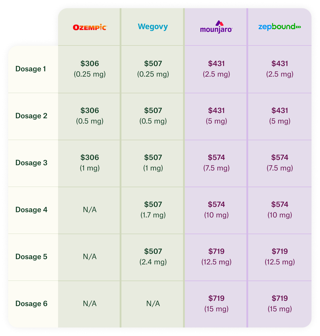 You will be charged every 4 weeks, with each delivery containing 4 weekly doses of the medication.